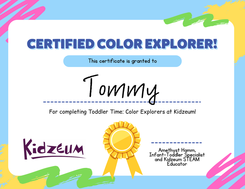Toddler Time is free with museum admission. Children who participate in all four sessions will receive a Color Explorers Certificate of Completion, a special keepsake celebrating everything they explored, created, and discovered.